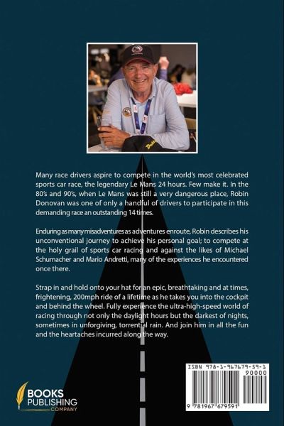 Many race drivers aspire to compete in the world's most celebrated sports car race, the legendary Le Mans 24 hours. Few make it. In the 80's and 90's, when Le Mans was still a very dangerous place, Robin Donovan was one of only a handful of drivers to participate in this demanding race an outstanding 14 times. Enduring as many misadventures as adventures enroute, Robin describes his unconventional journey to achieve his personal goal; to compete at the holy grail of sports car racing and against the likes of Michael Schumacher and Mario Andretti, many of the experiences he encountered once there. Strap in and hold onto your hat for an epic, breathtaking and at times, frightening, 200mph ride of a lifetime as he takes you into the cockpit and behind the wheel. Fully experience the ultra-high-speed world of racing through not only the daylight hours but the darkest of nights, sometimes in unforgiving, torrential rain. And join him in all the fun and the heartaches incurred along the way.
