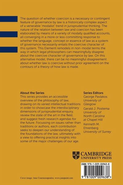 This Element proposes and defends a reconfiguration of the terms in which legal philosophers can disagree about the coercive character of governance by law. Whether the metric approach offers a better explanation of existing problems or fabricates a new problem that has the semblance of an existing problem remains to be seen.