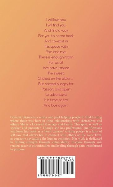'The Place That Keeps Love Alive' An intricately woven compendium of poems curated to tell a story, and bring the reader on an expedition to the center of the human condition. Based around a journey of finding healing after heartbreak, you'll join the author as she overcomes darkness and finds the strength to blaze a trail to self-love. Drawing from imagery such as: shadow and light, the sun and the moon, as well as a treasure map, the protagonist learns to access and feel love for herself where she thought she never would again. She plots a map along the way so as to find a way back to 'the place that keeps love alive.' Diving head first into romance, heartbreak, and finding love again, you will feel the honesty built into the stanzas. With universal themes for anyone needing to re-discover who they are, this is a roadmap for creating something out of nothing when all seems lost. Written through the lens of an acclaimed family, relationship, and sex therapist, this work promotes the reader's own healing journey. The poetic nature inspires you to not back away from love, but to understand what it takes to nurture it in your path through life, with all of its triumphs, pitfalls, and unforeseen moments in between.