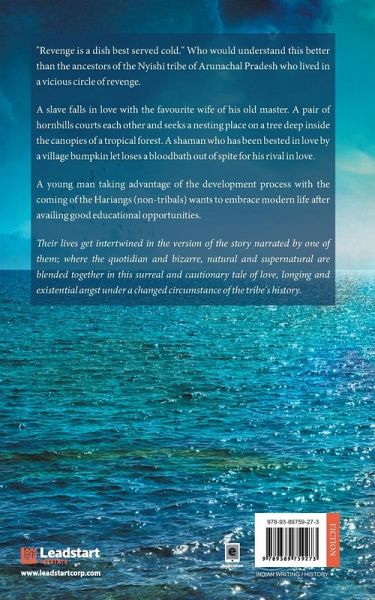 ""Revenge is a dish best served cold."" Who would understand this better than the ancestors of the Nyishi tribe of Arunachal Pradesh who lived in a vicious circle of revenge. A slave falls in love with the favourite wife of his old master. A pair of hornbills courts each other and seeks a nesting place on a tree deep inside the canopies of a tropical forest. A shaman who has been bested in love by a village bumpkin let loses a bloodbath out of spite for his rival in love. A young man taking advantage of the development process with the coming of the Hariangs (non-tribals) wants to embrace modern life after availing good educational opportunities. Their lives get intertwined in the version of the story narrated by one of them; where the quotidian and bizarre, natural and supernatural are blended together in this surreal and cautionary tale of love, longing and existential angst under a changed circumstance of the tribe's history.