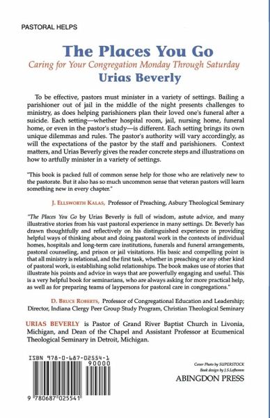 To be effective, pastors must minister in a variety of settings, each of which brings its own unique challenges. Each setting--hospital room, jail, nursing home, pastor's study--has its own dilemmas and resources. Here Urias Beverly offers concrete steps to minister artfully in a variety of contexts encountered Monday through Saturday.