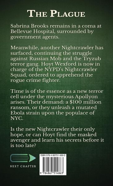 Sabrina Brooks remains in a coma at Bellevue Hospital, surrounded by government agents. Meanwhile, another Nightcrawler has surfaced, continuing the struggle against Russian Mob and the Tryzub terror gang. Hoyt Wexford is now in charge of the NYPD's Nightcrawler Squad, ordered to apprehend the rogue crime fighter. Time is of the essence as a new terror cell under the mysterious Apollyon arises. Their demand: a $100 million ransom, or they unleash a mutated Ebola strain upon the populace of NYC. Is the new Nightcrawler their only hope, or can Hoyt find the masked avenger and learn his secrets before it is too late?