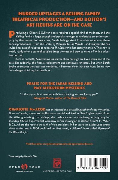 "Murder upstages a Kelling family theatrical production-and Boston's art sleuths are on the case. "The screwball mystery is Charlotte MacLeod's cup of tea" (Chicago Tribune). Producing a Gilbert & Sullivan opera requires a special kind of madness, and the Kelling family is large enough and peculiar enough to undertake an entire company by themselves. For years now, Sarah Kelling's Aunt Emma has supervised these annual productions-from The Pirates of Penzance to The Mikado-and this year she has invited her cast of relatives to rehearse The Sorcerer in her stately mansion. The show is nearly ready when a team of burglars drugs the cast and crew to make off with a priceless portrait. Theft or no theft, Aunt Emma insists the show must go on. Even when one of the cast dies suddenly, she finds a replacement and continues rehearsal. But when Sarah begins to suspect the actor was murdered, it becomes clear that dear Aunt Emma may be in danger of taking her final bow."--Provided by publisher.
