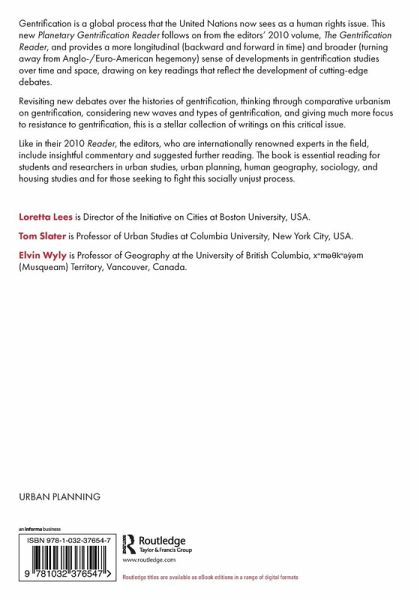 Gentrification is a global process that the United Nations now sees as a human rights issue. This new Planetary Gentrification Reader follows on from the editors' 2010 volume, The Gentrification Reader, and provides a more longitudinal (backward and forward in time) and broader (turning away from Anglo-/Euro-American hegemony) sense of developments in gentrification studies over time and space, drawing on key readings that reflect the development of cutting-edge debates. Revisiting new debates over the histories of gentrification, thinking through comparative urbanism on gentrification,…mehr