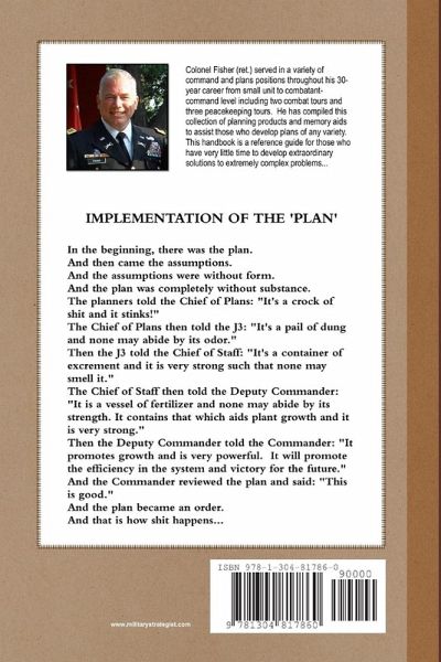 A handbook designed for the military planner. This handbook provides all of the reference material needed to conduct planning of any type (military, business, government) and at any level. While focused on the aspects of operational art and military science at the operational level, it includes discussion of strategy and policy as it pertains to the creation of plans. Forward by GEN Gary Luck. For those interested in a version with a coil binder that lays open during planning sessions, see 'The Planner Handbook - OPT Edition'.
