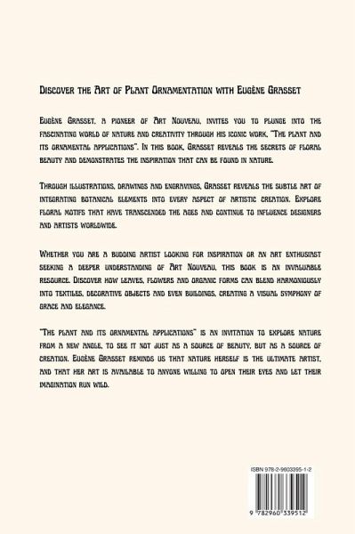 "The plant and its ornamental applications" is a true masterpiece of botanical art and design by Eugène Grasset. This beautifully illustrated book containing 72 illustrations is a celebration of the natural world and its integration into art and ornamentation. Eugène Grasset, a prominent figure of the Art Nouveau movement, takes you on a captivating journey through the mesmerizing world of plants and their artistic applications. Through vivid and meticulously detailed illustrations, Grasset explores the intricate beauty of various plant species, showcasing their forms, patterns, and colors in a way that is both educational and awe-inspiring. As you flip through the pages of this book, you will encounter a diverse array of plants, from delicate flowers to majestic trees, and learn about their uses in decorative arts, textiles, and architectural design. Whether you are an art connoisseur or simply someone who appreciates the elegance of botanical art, this book offers a rare opportunity to immerse yourself in the exquisite world of plants and their applications in ornamentation.