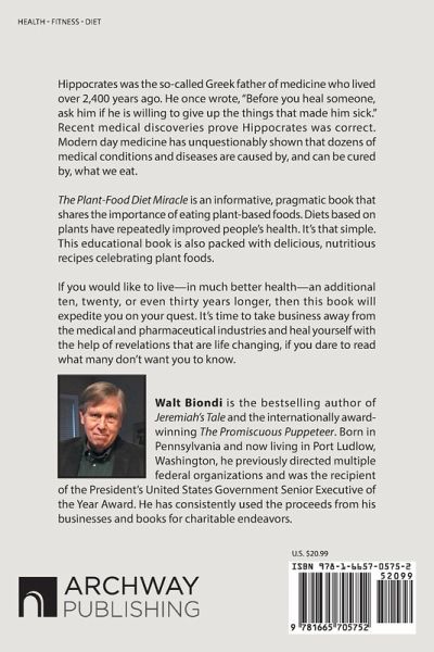 Hippocrates was the so-called Greek father of medicine who lived over 2,400 years ago. He once wrote, "Before you heal someone, ask him if he is willing to give up the things that made him sick." Recent medical discoveries prove Hippocrates was correct. Modern day medicine has unquestionably shown that dozens of medical conditions and diseases are caused by, and can be cured by, what we eat. The Plant-Food Diet Miracle is an informative, pragmatic book that shares the importance of eating plant-based foods. Diets based on plants have repeatedly improved people's health. It's that simple. This educational book is also packed with delicious, nutritious recipes celebrating plant foods. If you would like to live-in much better health-an additional ten, twenty, or even thirty years longer, then this book will expedite you on your quest. It's time to take business away from the medical and pharmaceutical industries and heal yourself with the help of revelations that are life changing, if you dare to read what many don't want you to know.
