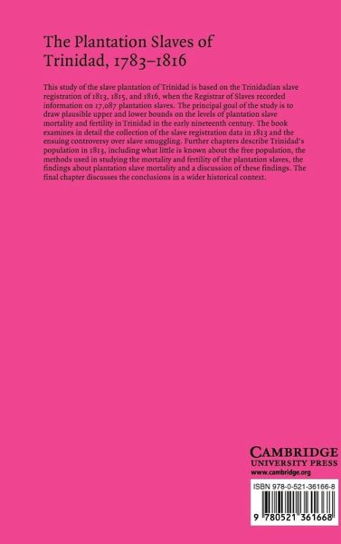 This book aims to estimate the levels of plantation slave mortality and fertility in Trinidad.