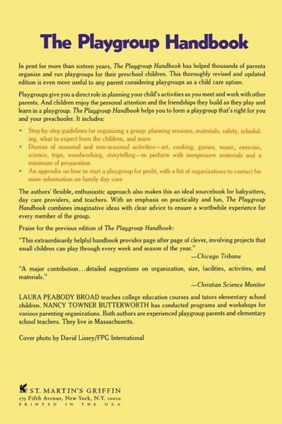 In print for more than sixteen years, The Playgroup Handbook has helped thousands of parents organize and run playgroups for their preschool children. This thoroughly revised and updated edition is even more useful to any parent considering playgroups as a child care option. Playgroups give you a direct role in planning your child's activities as you meet and work with other parents. And children enjoy the personal attention and the friendships they build as they play and learn in a playgroup. The Playgroup Handbook helps you to form a playgroup that's right for you and your preschooler. It includes: Step-by-step guidelines for organizing a group: planning sessions, materials, safety, scheduling, what to expect from the children, and more Dozens of seasonal and non-seasonal activities--art, cooking, games, music, exercise, science, trips, woodworking, storytelling--to perform with inexpensive materials and a minimum of preparation An appendix on how to start a playgroup for profit, with a list of organizations to contact for more information on family day care.