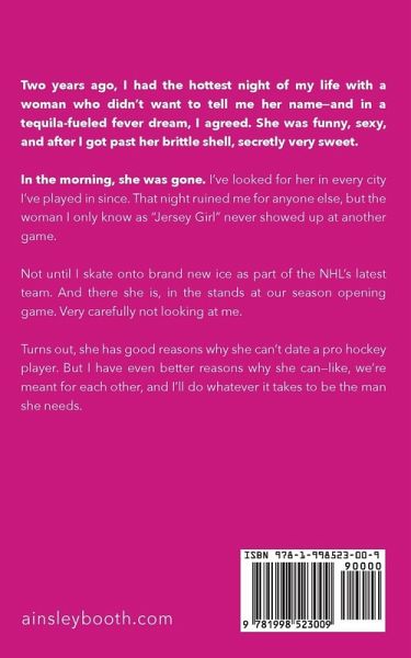 Two years ago, I had the hottest night of my life with a woman who didn't want to tell me her name-and in a tequila-fueled fever dream, I agreed. She was funny, sexy, and after I got past her brittle shell, secretly very sweet. In the morning, she was gone. I've looked for her in every city I've played in since. That night ruined me for anyone else, but the woman I only know as "Jersey Girl" never showed up at another game. Not until I skate onto brand new ice as part of the NHL's latest team. And there she is, in the stands at our season opening game. Very carefully not looking at me. Turns out, she has good reasons why she can't date a pro hockey player. But I have even better reasons why she can-like, we're meant for each other, and I'll do whatever it takes to be the man she needs.