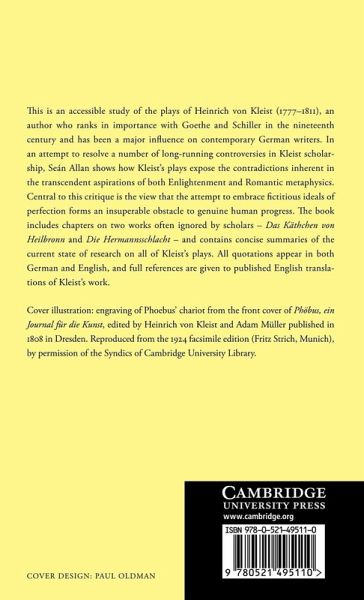 This is an accessible 1996 study of the plays of Kleist (1777-1811), who ranks with Goethe and Schiller amongst nineteenth-century authors and who has been a major influence on contemporary German writers. Seán Allan examines Kleist's critique of the aspirations of both Enlightenment and Romantic metaphysics, notably his suggestion that the pursuit of 'transcendent' ideals of perfection constitutes a formidable obstacle to genuine progress in human affairs. In so doing, he offers resolutions of a number of long-running controversies in Kleist criticism, as well as summarizing the state of research on all the plays. The book includes discussion of two plays usually neglected by scholars - Das Käthchen von Heilbronn and Die Hermannsschlacht. All quotations are given in both German and English and full references are given to published English translations of Kleist's works as well as to the German originals.