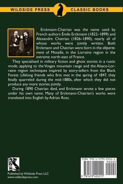 Erckmann-Chatrian was the name used by French authors Emile Erckmann (1822–1899) and Alexandre Chatrian (1826–1890), nearly all of whose works were jointly written. Both Erckmann and Chatrian were born in the departement of Moselle, in the Lorraine region in the extreme north-east of France. They specialised in military fiction and ghost stories in a rustic mode, applying to the Vosges mountain range and the Alsace-Lorraine region techniques inspired by story-tellers from the Black Forest. Lifelong friends who first met in the spring of 1847, they finally quarreled during the mid-1880s, after which they did not produce any more stories jointly. During 1890 Chatrian died, and Erckmann wrote a few pieces under his own name. Many of Erckmann-Chatrian's works were translated into English by Adrian Ross.
