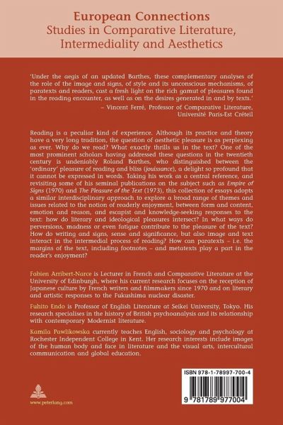 «Under the aegis of an updated Barthes, these complementary analyses of the role of the image and signs, of style and its unconscious mechanisms, of paratexts and readers, cast a fresh light on the rich gamut of pleasures found in the reading encounter, as well as on the desires generated in and by texts.» (Vincent Ferré, Professor of Comparative Literature, Université Paris-Est Créteil)