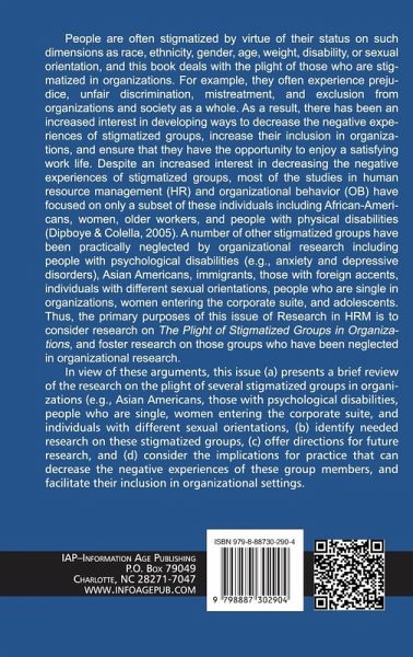 People are often stigmatized by virtue of their status on such dimensions as race, ethnicity, gender, age, weight, disability, or sexual orientation, and this book deals with the plight of those who are stigmatized in organizations. For example, they often experience prejudice, unfair discrimination, mistreatment, and exclusion from organizations and society as a whole. As a result, there has been an increased interest in developing ways to decrease the negative experiences of stigmatized groups, increase their inclusion in organizations, and ensure that they have the opportunity to enjoy a satisfying work life. Despite an increased interest in decreasing the negative experiences of stigmatized groups, most of the studies in human resource management (HR) and organizational behavior (OB) have focused on only a subset of these individuals including African-Americans, women, older workers, and people with physical disabilities (Dipboye & Colella, 2005). A number of other stigmatized groups have been practically neglected by organizational research including people with psychological disabilities (e.g., anxiety and depressive disorders), Asian Americans, immigrants, those with foreign accents, individuals with different sexual orientations, people who are single in organizations, women entering the corporate suite, and adolescents. Thus, the primary purposes of this issue of Research in HRM is to consider research on The plight of stigmatized groups in organizations, and foster research on those groups who have been neglected in organizational research. In view of these arguments, this issue (a) presents a brief review of the research on the plight of several stigmatized groups in organizations (e.g., Asian Americans, those with psychological disabilities, people who are single, women entering the corporate suite, and individuals with different sexual orientations, (b) identify needed research on these stigmatized groups, (c) offer directions for future research, and (d) consider the implications for practice that can decrease the negative experiences of these group members, and facilitate their inclusion in organizational settings.