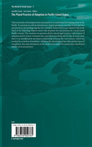 This book deals with adoption laws and practices in small island developing states in the Pacific. It commences with an introductory chapter giving an overview of relevant laws and practices and pulling together the common themes and issues raised in the book. Each of the following chapters deals with adoption law and practice in a small South Pacific country. The countries in question all have plural legal systems, with systems of adoption and its closest customary law equivalent operating side by side. In most cases, there is an insufficiently developed relationship between the two systems, which has resulted in a number of problems. Additionally, international law adds another layer of complexity. Size and remoteness in the small states under discussion have a profound impact on local practices.