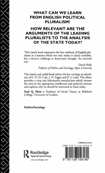 This timely and useful book selects the key writings on pluralism of G.D.H. Cole, J.N. Figgis and H.J. Laski. The editor provides a crisp and informative introduction which situates the texts in the appropriate intellectual and political contexts and explains why we should be interested in them today.