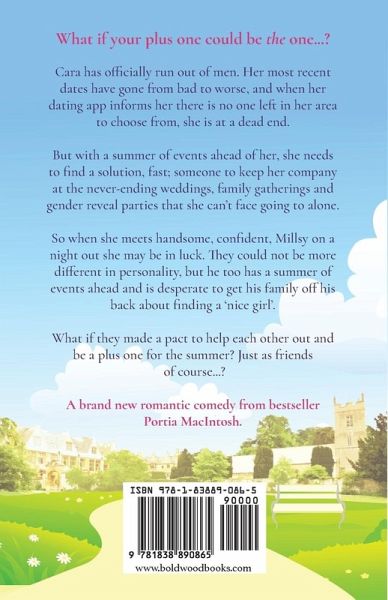 What if your plus one could be the one...? ¿¿Cara has officially run out of men. Her most recent dates have gone from bad to worse, and when her dating app informs her there is no one left in her area to choose from, she is at a dead end. ¿But with a summer of events ahead of her, she needs to find a solution, fast; someone to keep her company at the never-ending weddings, family gatherings and gender reveal parties that she can’t face going to alone. So when she meets handsome, confident, Millsy on a night out she may be in luck. They could not be more different in personality, but he too has a summer of events ahead and is desperate to get his family off his back about finding a ‘nice girl’. What if they made a pact to help each other out and be a plus one for the summer? Just as friends of course...? A brand new romantic comedy from bestseller Portia MacIntosh, perfect for fans of Zara Stoneley, Sophie Ranald and Mhairi McFarlane.