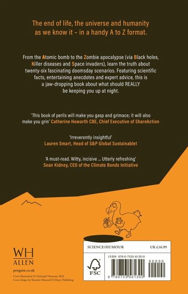 The end of life, the universe and humanity as we know it - in a handy A to Z format. From the Atomic bomb to the Zombie apocalypse (via Black holes, Killer diseases and Space invaders), learn the truth about twenty-six fascinating doomsday scenarios. Featuring scientific facts, entertaining anecdotes and expert advice, this is a jaw-dropping book about what should REALLY be keeping you up at night. Funny, eye-opening and charmingly illustrated, this is the perfect book for doomsayers, cynics and pessimists everywhere.
