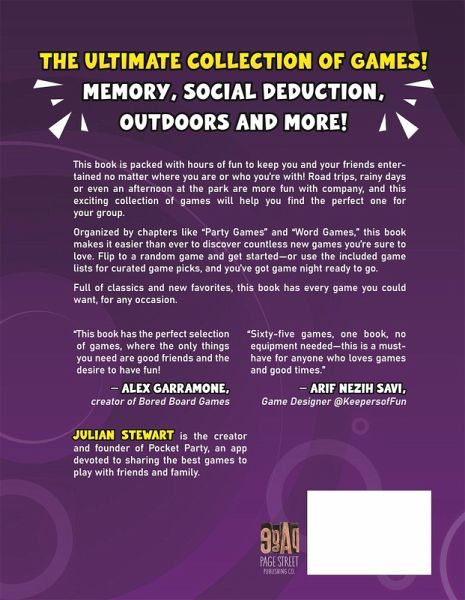 Memory, Social Deduction, Outdoors and More! This book is packed with hours of fun to keep you and your friends entertained no matter where you are or who you're with! Road trips, rainy days or even an afternoon at the park are more fun with company, and this exciting collection of games will help you find the perfect one for your group. Organized by chapters like "Party Games" and "Word Games ," this book makes it easier than ever to discover countless new games you're sure to love. Flip to a random game and get started-or use the included game lists for curated game picks, and you've got game night ready to go. Plus, each game comes with scannable QR codes for instant, accessible video instructions that show you everything you need to play. Full of classics and new favorites, this book has every game you could want, for any occasion.