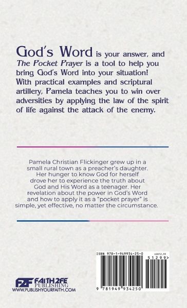 Most people have a vague understanding of the Bible and the stories it tells, but do we truly understand what a powerful tool it is? Many of us have been to church and hear the word taught, but what do we do with that word after we leave? God's Word is your answer, and The Pocket Prayer is a tool to help you bring God's Word into your situation! With practical examples and scriptural artillery, Pamela teaches you to win over adversities by applying the law of the spirit of life against the attack of the enemy. This is a simple truth and many victories have been won because of it! So, buckle your seat belt, put your Faith in gear and see what all God has in-store for you!