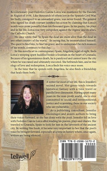 Revolutionary poet Federico Garcia Lorca was murdered by the Fascists in August of 1936. Like thousands of others lost in the Spanish Civil War, his body, consigned to an unmarked grave, was never found. The general who signed his death warrant justified his action by claiming that Lorca's words were more powerful than ten thousand guns. In his poetry, his plays and in his life, Lorca was very outspoken against the regime and its allies, the Catholic Church. He once wrote that "In Spain the dead are more alive than the dead in any other country of the world." In saying this, he immortalized himself. The quest to find him, to find his grave, and to understand the rich nuances of his words, continues to this day. In this novella set in contemporary Spain, Angelina, a girl of eight, finds Lorca's weeping spirit huddled beside a fountain in the heart of Granada. Because of his ignominious death, he is paralyzed and cannot leave the city where he was raised and ultimately executed. She befriends him, and in this elegy of love and redemption, Lorca finds his voice once more. In the time that he spends with Angelina, he also finds a friendship that heals them both.