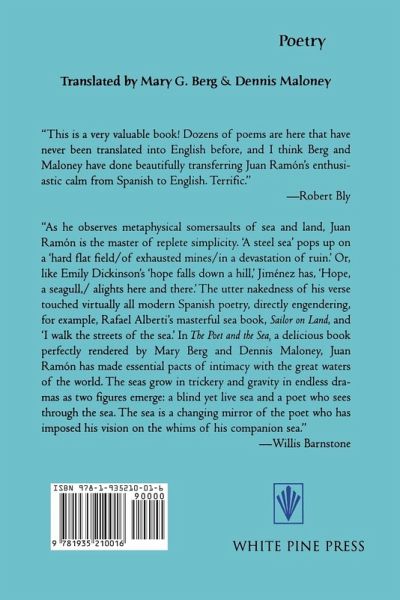 Juan Ramon Jimenez (1881-1958) was a member of the generation of 1898, which ushered in a renaissance in Spanish Poetry. In 1956 he received the Nobel Prize for Literature. He dedicated over 60 years of his life to poetry and published many volumes of work. He also is well known for his prose work, Platero and I. Mary Berg is a writer and translator. She has translated a number of books from Spanish, including I've Forgotten Your Name by Martha Rivera, River of Sorrows by Libertad Demitropulos, Ximena at the Crossroads by Laura Riesco, and The Landscape of Castile by Antonio Machado. She teaches at Harvard University Extension and Brandeis University. Dennis Maloney is a poet and translator. His works of translation include The House in the Sand by Pablo Neruda and The Landscape of Castile by Antonio Machado. His most recent volume of poetry is The Map Is Not The Territory.