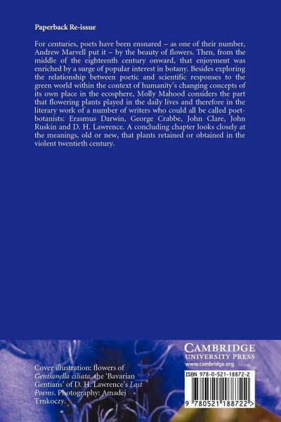 For centuries, poets have been ensnared - as one of their number, Andrew Marvell put it - by the beauty of flowers. Then, from the middle of the eighteenth century onward, that enjoyment was enriched by a surge of popular interest in botany. Besides exploring the relationship between poetic and scientific responses to the green world within the context of humanity's changing concepts of its own place in the ecosphere, Molly Mahood considers the part that flowering plants played in the daily lives and therefore in the literary work of a number of writers who could all be called poet-botanists: Erasmus Darwin, George Crabbe, John Clare, John Ruskin and D. H. Lawrence. A concluding chapter looks closely at the meanings, old or new, that plants retained or obtained in the violent twentieth century.