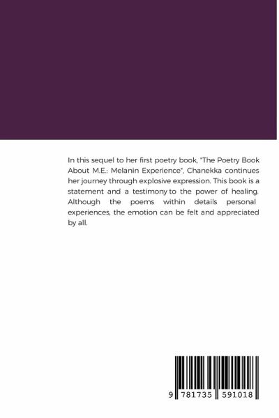 In this sequel to her first poetry book, "The Poetry Book About M.E.: Melanin Experience", Chanekka continues her journey through explosive expression. This book is a statement and a testimonyto the power of healing. Although the poems within details personal experiences, the emotion can be felt and appreciated by all.