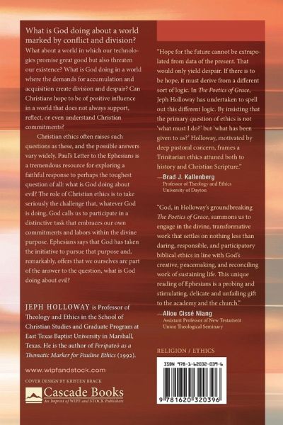 What is God doing about a world marked by conflict and division? What about a world in which our technologies promise great good but also threaten our existence? What is God doing in a world where the demands for accumulation and acquisition create division and despair? Can Christians hope to be of positive influence in a world that does not always support, reflect, or even understand Christian commitments? Christian ethics often raises such questions as these, and the possible answers vary widely. Paul's Letter to the Ephesians is a tremendous resource for exploring a faithful response to perhaps the toughest question of all: what is God doing about evil? The role of Christian ethics is to take seriously the challenge that, whatever God is doing, God calls us to participate in a distinctive task that embraces our own commitments and labors within the divine purpose. Ephesians says that God has taken the initiative to pursue that purpose and, remarkably, offers that we ourselves are part of the answer to the question, what is God doing about evil?