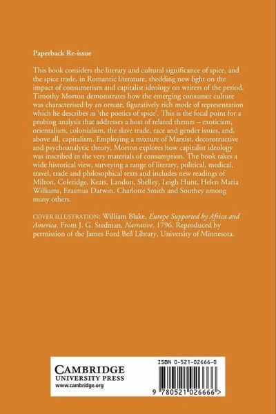 This book considers the literary and cultural significance of spice, and the spice trade, in Romantic literature, shedding new light on the impact of consumerism and capitalist ideology on writers of the period. Timothy Morton demonstrates how the emerging consumer culture was characterized by an ornate, figuratively rich mode of representation which he describes as 'the poetics of spice'. This is the focal point for a probing analysis that addresses a host of related themes - exoticism, orientalism, colonialism, the slave trade, race and gender issues, and, above all, capitalism. Employing a mixture of Marxist, deconstructive and psychoanalytic theory, Morton explores how capitalist ideology was inscribed in the very materials of consumption. The book takes a wide historical perspective, surveying a range of literary, political, medical, travel, trade and philosophical texts, and includes new readings of Milton, Coleridge, Keats, Shelley, Leigh Hunt, Charlotte Smith and Southey among many others.