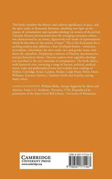 This 2000 book considers the literary and cultural significance of spice, and the spice trade, in Romantic literature, shedding new light on the impact of consumerism and capitalist ideology on writers of the period. Timothy Morton demonstrates how the emerging consumer culture was characterized by an ornate, figuratively rich mode of representation which he describes as 'the poetics of spice'. This is the focal point for a probing analysis that addresses a host of related themes - exoticism, orientalism, colonialism, the slave trade, race and gender issues, and, above all, capitalism.…mehr