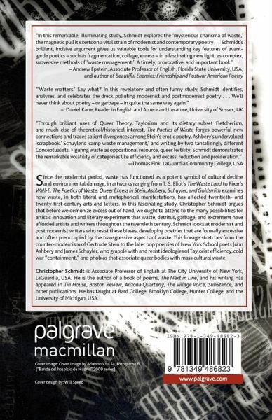 '''Waste matters.' Say what? In this revelatory and often funny study, Schmidt identifies, analyses and celebrates the dreck polluting modernist and postmodernist poetry . . . We'll never think about poetry or garbage in quite the same way again.' Daniel Kane, Reader in English and American Literature, University of Sussex, UK