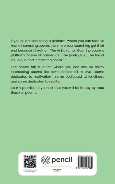 If you all are searching a platform, where you can read so many interesting poems then here your searching get their end because i ( Author , The Ankit kumar Gaur ) prepare a platform for you all named as "" The poetry fair , The fair of 28 unique and interesting poem '' . The poetry fair is a fair where you can find so many intertesting poems like some dedicated to love , some dedicated to motivation , some dedicated to loneliness and some dedicated to reality. It's my promise to yourself that you will be happy by read these all poems.