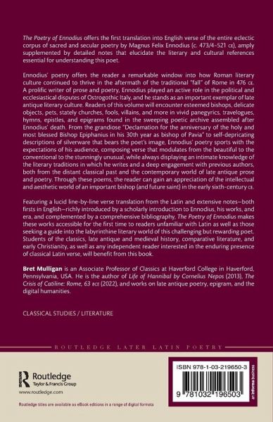 "The Poetry of Ennodius is the product of extensive labor and hard-earned insights. It is worthy of the poet it engages and should serve him well, bringing Ennodius's verse before new audiences and offering relief to those tasked with untangling his knotty Latin lines." - Bryn Mawr Classical Review