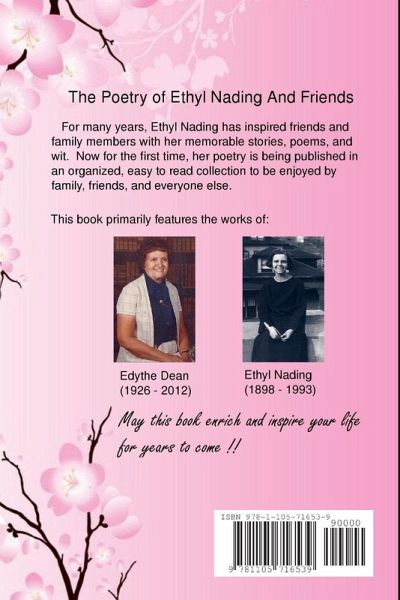 This is a collection of the poetry written by Ethyl Nading (my grandmother). My mother wanted to see these poems published before she died, but was unable to fulfill her wish. So I have collected her poems and have published them in this book.