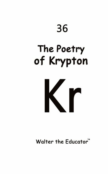 "Earning a degree in chemistry changed my life!" - Walter the Educator. This book is dedicated to all the chemistry lovers, like myself, across the world. The Poetry of Krypton belongs to the Chemical Element Poetry Book Series by Walter the Educator¿. Collect all books in the series at WaltertheEducator.com. Creating a poetry book about the chemical element Krypton was an intriguing and unique endeavor. Krypton, a noble gas, possesses an air of mystery and rarity, which serves as a rich source of inspiration for poets. By exploring the characteristics and symbolism associated with Krypton, I can delve into themes such as isolation, hidden depths, and the search for identity. Poems explore the juxtaposition of Krypton's inertness and the human desire for connection and meaning. This book serves as a creative exploration of science, language, and imagination, merging the realms of science and art in a captivating and thought-provoking manner.