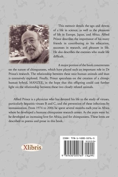 This memoir details the ups and downs of a life in science, as well as the pleasures of life in Europe, Japan, and Africa. Alfred Prince describes the importance of his many friends in contributing to his education, successes in research, and pleasure in life. He also describes the enemies who made life difficult. A major portion of the book concentrates on the nature of chimpanzees, which have played such an important role in Dr Prince's research. The relationship between these near human animals and man is extensively explored. Finally, Prince speculates on the creation of a chimp-human hybrid, MANZEE, in the hope that this offspring could cast further light on the relationship between these two closely related animals.