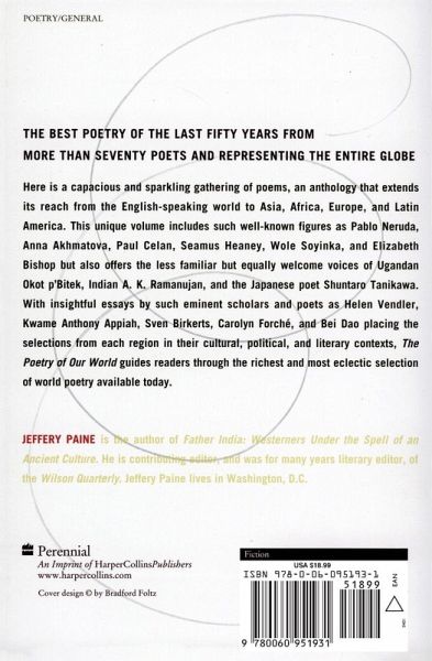 Here is a capacious and sparkling gathering of poems, an anthology that extends its reach from the English-speaking world to Asia, Africa, Europe, and Latin America. This unique volume includes such well-known figures as Pablo Neruda, Anna Akhmatova, Paul Celan, Seamus Heaney, Wole Soyinka, and Elizabeth Bishop but also offers the less familiar but equally welcome voices of Ugandan Okot p'Bitek, Indian A.K. Ramanujan, and the Japanese poet Shuntaro Tanikawa. With insightful essays by such eminent scholars and poets as Helen Vendler, Kwame Anthony Appiah, Sven Birkerts, Carolyn Forché, and Bei Dao placing the selections from each region in their cultural, political, and literary contexts, The Poetry of Our World guides readers through the richest and most eclectic selection of world poetry available today.