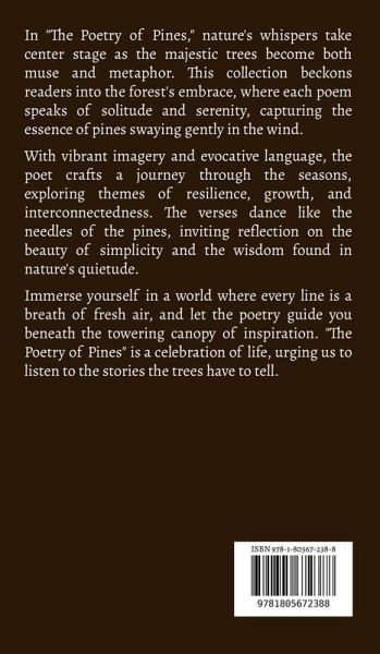 In "The Poetry of Pines," nature's whispers take center stage as the majestic trees become both muse and metaphor. This collection beckons readers into the forest's embrace, where each poem speaks of solitude and serenity, capturing the essence of pines swaying gently in the wind. With vibrant imagery and evocative language, the poet crafts a journey through the seasons, exploring themes of resilience, growth, and interconnectedness. The verses dance like the needles of the pines, inviting reflection on the beauty of simplicity and the wisdom found in nature's quietude. Immerse yourself in a world where every line is a breath of fresh air, and let the poetry guide you beneath the towering canopy of inspiration. "The Poetry of Pines" is a celebration of life, urging us to listen to the stories the trees have to tell.
