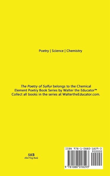 "Earning a degree in chemistry changed my life!" - Walter the Educator. This book is dedicated to all the chemistry lovers, like myself, across the world. The Poetry of Sulfur belongs to the Chemical Element Poetry Book Series by Walter the Educator¿. Collect all books in the series at WaltertheEducator.com. Creating a poetry book about the chemical element sulfur can offer a unique perspective on this often misunderstood element. Sulfur, with its distinctive properties and historical significance, inspires a diverse range of poetic expressions. From its role in ancient religious rituals to its modern-day industrial applications, sulfur provides ample material for poetry that explores themes of transformation, purification, and resilience. By delving into the rich and complex nature of sulfur through poetry, this book can foster a deeper appreciation for this fundamental element.
