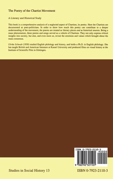 This book is a comprehensive analysis of a neglected aspect of Chartism, its poetry. Here the Chartists are documented as poet-politicians. In order to show how much this poetry can contribute to a deeper understanding of the movement, the poems are treated as literary pieces and as historical sources. Being a mass phenomenon, these poems and songs served as a vehicle of Chartism. They not only express critical insights into society, but also, and even more so, reveal the emotions and values which brought about the mass consensus.