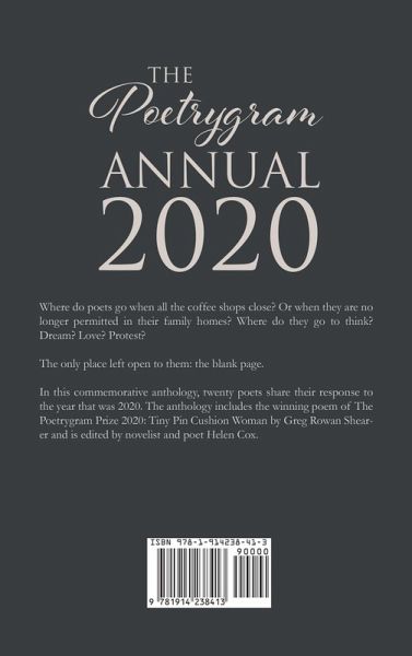 Where do poets go when their coffee shops close? When they are no longer permitted into their family's homes? Where do they go to dream? To write? To protest? The only place left open to them: the page. In this commemorative anthology twenty poets share their response to the year that was 2020. The anthology includes the winning poem of The Poetrygram Prize 2020: Tiny Pin Cushion Woman by Greg Rowan Shearer and is edited by novelist and poet Helen Cox.