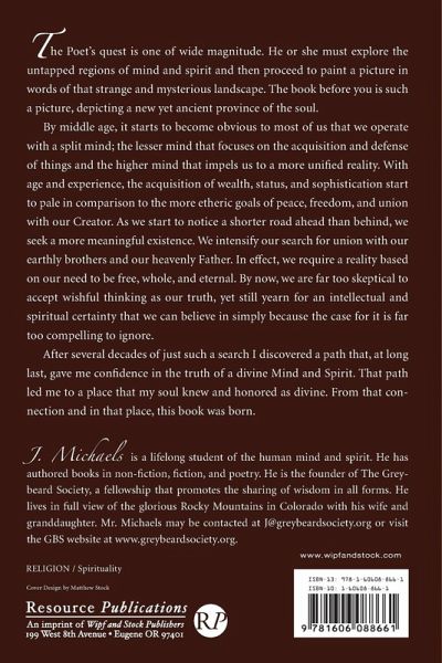 The poet's quest is one of wide magnitude. He or she must explore the untapped regions of mind and spirit and then proceed to paint a picture in words of that strange and mysterious landscape. The book before you is such a picture, depicting a new yet ancient province of the soul. By middle age, it starts to become obvious to most of us that we operate with a split mind; the lesser mind that focuses on the acquisition and defense of things and the higher mind that impels us to a more unified reality. With age and experience, the acquisition of wealth, status, and sophistication start to pale in comparison to the more etheric goals of peace, freedom, and union with our Creator. As we start to notice a shorter road ahead than behind, we seek a more meaningful existence. We intensify our search for union with our earthly brothers and our heavenly Father. In effect, we require a reality based on our need to be free, whole, and eternal. By now, we are far too skeptical to accept wishful thinking as our truth, yet still yearn for an intellectual and spiritual certainty that we can believe in simply because the case for it is far too compelling to ignore. After several decades of just such a search I discovered a path that, at long last, gave me confidence in the truth of a divine Mind and Spirit. That path led me to a place that my soul knew and honored as divine. From that connection and in that place, this book was born.