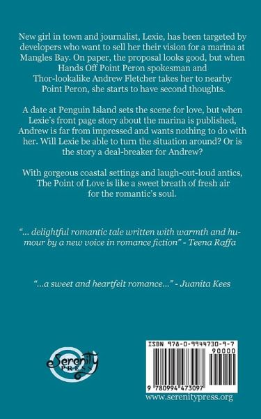 New girl in town and journalist, Lexie, has been targeted by developers who want to sell her their vision for a marina at Mangles Bay. On paper, the proposal looks good, but when Hands Off Point Peron spokesman and Thor-lookalike Andrew Fletcher takes her to nearby Point Peron, she starts to have second thoughts. A date at Penguin Island sets the scene for love, but when Lexie's front page story about the marina is published, Andrew is far from impressed and wants nothing to do with her. Will Lexie be able to turn the situation around? Or is the story a deal-breaker for Andrew? With gorgeous coastal settings and laugh-out-loud antics, The Point of Love is like a sweet breath of fresh air for the romantic's soul. A sort story from the Rocky Romance anthology