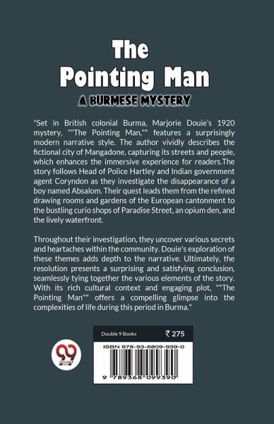Set in British colonial Burma, Marjorie Douie's 1920 mystery, ""The Pointing Man,"" features a surprisingly modern narrative style. The author vividly describes the fictional city of Mangadone, capturing its streets and people, which enhances the immersive experience for readers. The story follows Head of Police Hartley and Indian government agent Coryndon as they investigate the disappearance of a boy named Absalom. Their quest leads them from the refined drawing rooms and gardens of the European cantonment to the bustling curio shops of Paradise Street, an opium den, and the lively waterfront. Throughout their investigation, they uncover various secrets and heartaches within the community. Douie's exploration of these themes adds depth to the narrative. Ultimately, the resolution presents a surprising and satisfying conclusion, seamlessly tying together the various elements of the story. With its rich cultural context and engaging plot, ""The Pointing Man"" offers a compelling glimpse into the complexities of life during this period in Burma.