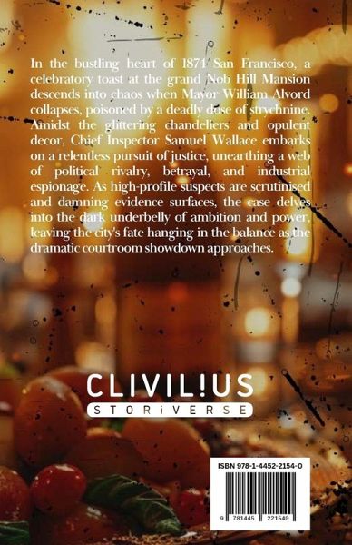 In the bustling heart of 1874 San Francisco, a celebratory toast at the grand Nob Hill Mansion descends into chaos when Mayor William Alvord collapses, poisoned by a deadly dose of strychnine. Amidst the glittering chandeliers and opulent decor, Chief Inspector Samuel Wallace embarks on a relentless pursuit of justice, unearthing a web of political rivalry, betrayal, and industrial espionage. As high-profile suspects are scrutinised and damning evidence surfaces, the case delves into the dark underbelly of ambition and power, leaving the city's fate hanging in the balance as the dramatic courtroom showdown approaches.…mehr