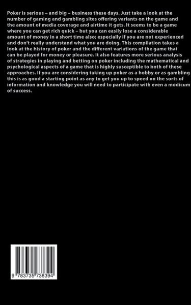 Poker is serious - and big - business these days. Just take a look at the number of gaming and gambling sites offering variants on the game and the amount of media coverage and airtime it gets. It seems to be a game where you can get rich quick - but you can easily lose a considerable amount of money in a short time also; especially if you are not experienced and don't really understand what you are doing. This compilation takes a look at the history of poker and the different variations of the game that can be played for money or pleasure. It also features more serious analysis of strategies in playing and betting on poker including the mathematical and psychological aspects of a game that is highly susceptible to both of these approaches. If you are considering taking up poker as a hobby or as gambling - this is as good a starting point as any to get you up to speed on the sorts of information and knowledge you will need to participate with even a modicum of success.