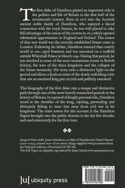 The 1st duke of Hamilton played an important role in the politics and life of Britain in the first half of the seventeenth century. Born in 1606 into the Scottish ancient noble family of Hamilton, who enjoyed a blood connection with the royal Stuarts, he was well placed to take full advantage of the union of the crowns in 1603 which opened up substantial opportunities in England and Ireland. The centre of that new world was the recently established Stuart court in London. Following his father, Hamilton entered that courtly world in 1620 at the age of fourteen and was executed on a scaffold outside Whitehall Palace in March 1649. During that period, he was involved in some of the most momentous events in British history, the wars of the three kingdoms and the collapse of the Stuart monarchy. His story casts a distinctive light on the period and allows a fresh account of the slowly unfolding crisis that saw an anointed king put on trial and publicly executed. The book is structured in three parts. Part one is a cluster of five studies concentrating on events in Scotland, England, Ireland and mainland Europe prior to 1638. Part two presents three chapters on Hamilton's role in the three kingdom crisis between 1637-1643. Part three covers the remarkable final phase in Hamilton's life detailing the Engagement, defeat at Preston and his execution in London. This biography of the 1st duke cuts a unique and distinctive path through one of the most heavily researched periods in the history of Britain. In a period of kingly personal rule, Hamilton stood at the shoulder of the king, cajoling, persuading and ultimately failing to steer him away from civil war in his kingdoms. The main source for this account is the Hamilton Papers brought into the public domain in the last few decades and used extensively for the first time.