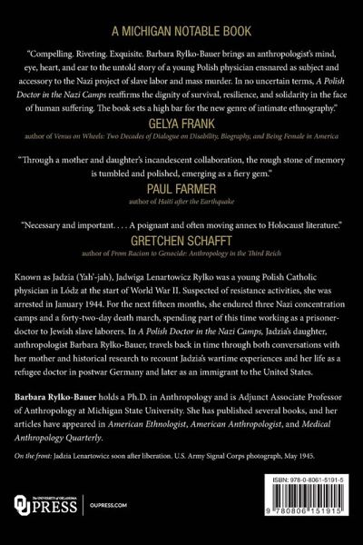 Jadwiga Lenartowicz Rylko, known as Jadzia (Yah′-jah), was a young Polish Catholic physician in ¿ód¿ at the start of World War II. Suspected of resistance activities, she was arrested in January 1944. For the next fifteen months, she endured three Nazi concentration camps and a forty-two-day death march, spending part of this time working as a prisoner-doctor to Jewish slave laborers. A Polish Doctor in the Nazi Camps follows Jadzia from her childhood and medical training, through her wartime experiences, to her struggles to create a new life in the postwar world. Jadzia's daughter, anthropologist Barbara Rylko-Bauer, constructs an intimate ethnography that weaves a personal family narrative against a twentieth-century historical backdrop. As Rylko-Bauer travels back in time with her mother, we learn of the particular hardships that female concentration camp prisoners faced. The struggle continued after the war as Jadzia attempted to rebuild her life, first as a refugee doctor in Germany and later as an immigrant to the United States. Like many postwar immigrants, Jadzia had high hopes of making new connections and continuing her career. Unable to surmount personal, economic, and social obstacles to medical licensure, however, she had to settle for work as a nurse's aide. As a contribution to accounts of wartime experiences, Jadzia's story stands out for its sensitivity to the complexities of the Polish memory of war. Built upon both historical research and conversations between mother and daughter, the story combines Jadzia's voice and Rylko-Bauer's own journey of rediscovering her family's past. The result is a powerful narrative about struggle, survival, displacement, and memory, augmenting our understanding of a horrific period in human history and the struggle of Polish immigrants in its aftermath.