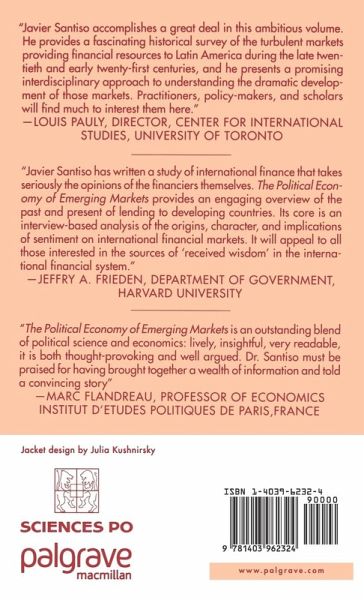"Javier Santiso has written a study of international finance that takes seriously the opinions of the financiers themselves. The Political Economy of Emerging Markets provides an engaging overview of the past and present of lending to developing countries. Its core is an interview-based analysis of the origins, character, and implications of sentiment on international financial markets. It will appeal to all those interested in the sources of 'received wisdom' in the international financial system." - Jeffry A. Frieden, Department of Government, Harvard University